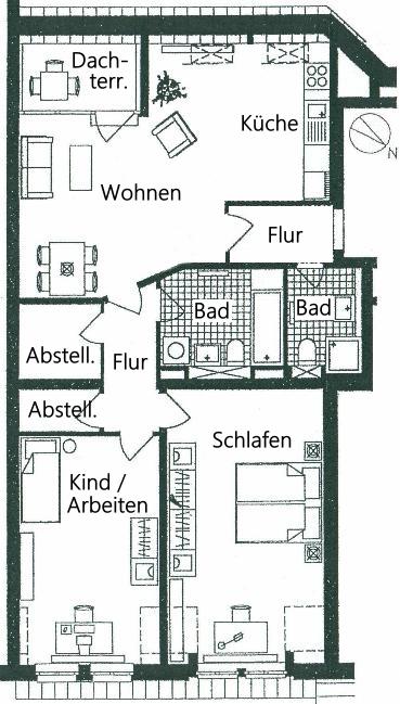 ** Zentrum-Nord: 3-Zimmer-DG-Whg. mit Dachterrasse und zwei Bädern **